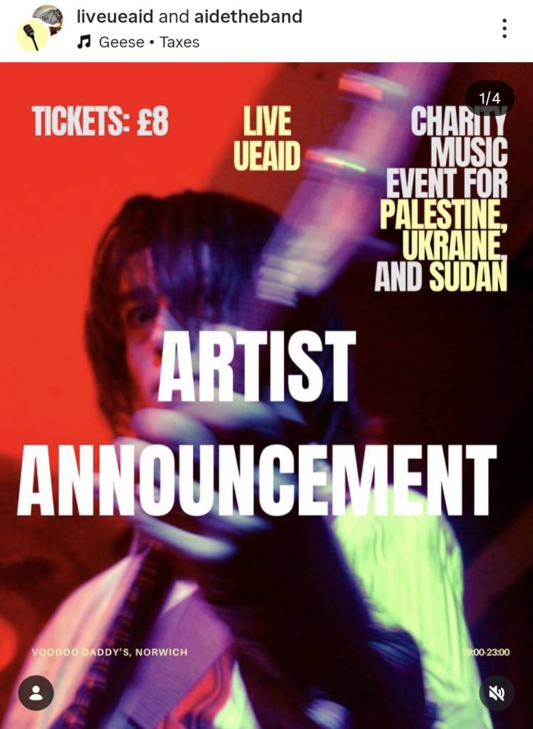 Fancy some live music? Live UEAid is a charity music concert organised by UEA students to raise money for the ongoing crises in Palestine, Ukraine and Sudan. The night will host music, poetry and deep conversations at Voodoo Daddys – Norwich’s only dive bar and music venue.